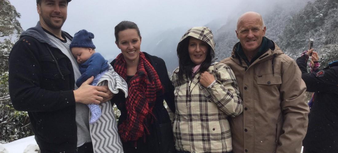 The most exciting adventure that Ryan, Ari and I have had so far was a Snowboarding trip to New Zealand when he was 9 weeks old. We were lucky enough that my parents came along to mind the baby whilst Ryan and I got some time in together on the slopes. Ari takes a bottle of expressed milk so I was able to miss one feed a day, then Mum and Dad would bring him up to the ski resort for subsequent feeds. He ended up visiting all 4 different Ski Mountains around Queenstown! It was so amazing to have Ari there with us and I will never forget the moment when it started snowing and soft little snow flakes fell around his beautiful little face… the moment was priceless.